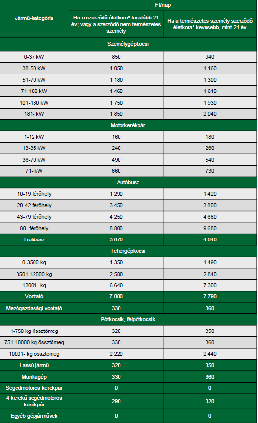 A MABISZ az alábbiakban teszi közzé a fedezetlenségi díjak 2024. évre érvényes tarifáit. A fedezetlenségi díjak naptári évre vonatkoznak, így amennyiben a fedezetlenséggel érintett időszak két naptári évet is érint, eltérő díjak kerülhetnek felszámításra.